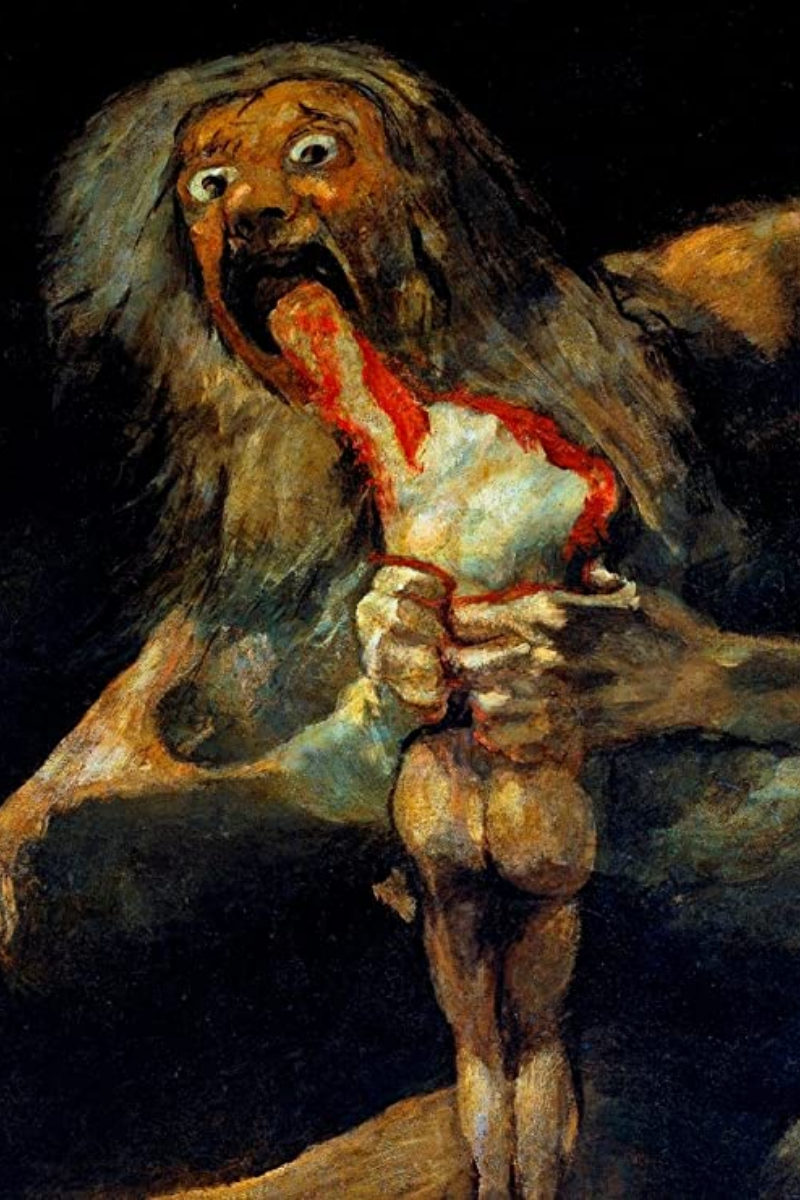 Saturno devorando um filho – Uma das pinturas mais perturbadoras representando o deus do tempo na mitologia romana. Atormentado, Saturno necessita matar para viver. Sua própria existência, a existência do tempo, depende da morte de todos. Se ninguém morre, morre o tempo. Essa pintura desperta o horror, a tristeza e destruição. Tudo passa, tudo acaba. Saturno é terrível, porque sabemos que todos seremos devorados pelo tempo.